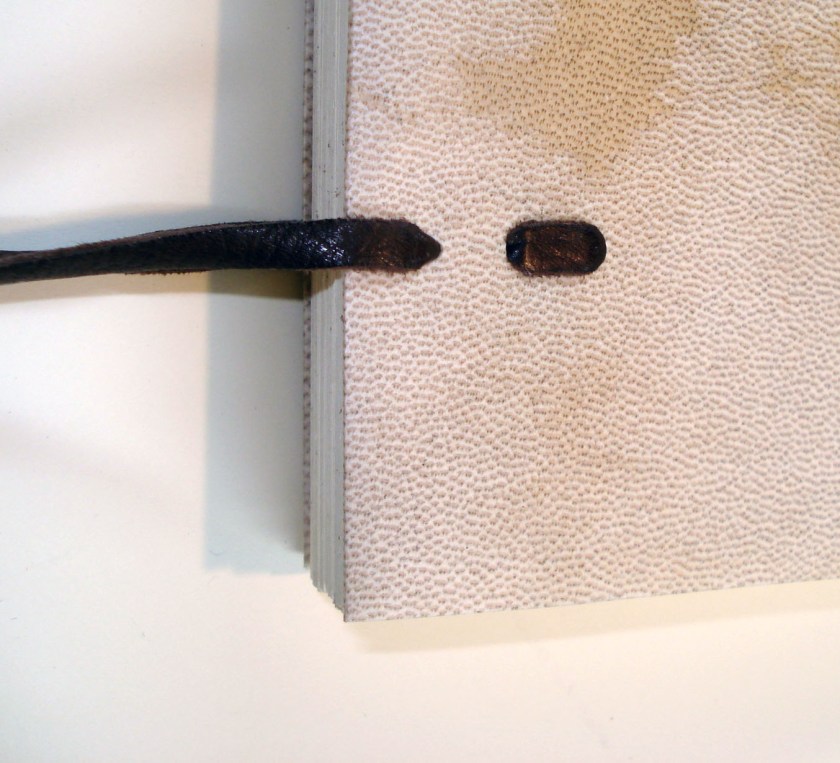 The structure of the tie also holds the simple turn-ins of the stiff parchment together.