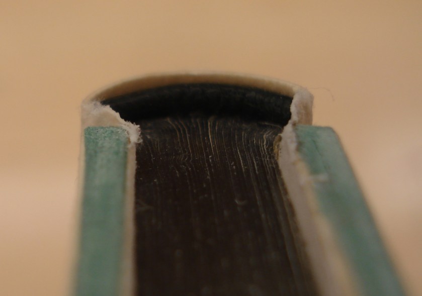 This binding style is actually quite fun to do and the results look very refined. I highly recommend Riley and Verheyen’s articles for step by step instructions. John Hyltoft also demonstrated this binding at the GBW Standards conference in 1995. You can purchase a video of that demonstration here.