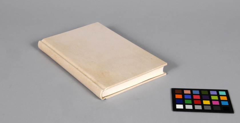 These bindings are elegant and particularly satisfying binding to handle. The covers are cool to the touch and the visual texture of the skin is eye-catching. They are quite durable, chemically stable, and take gold tooling well. Parchment is hygroscopic, however, and dimensionally unstable (Wood, 1995). For this reason, covering stiff boards with parchment and keeping them flat can be quite challenging. It is much easier to use parchment in a limp, non adhesive structure (see my post on those here). When the book is finished, it must be stored at a stable temperature and relative humidity to keep the boards from warping.
