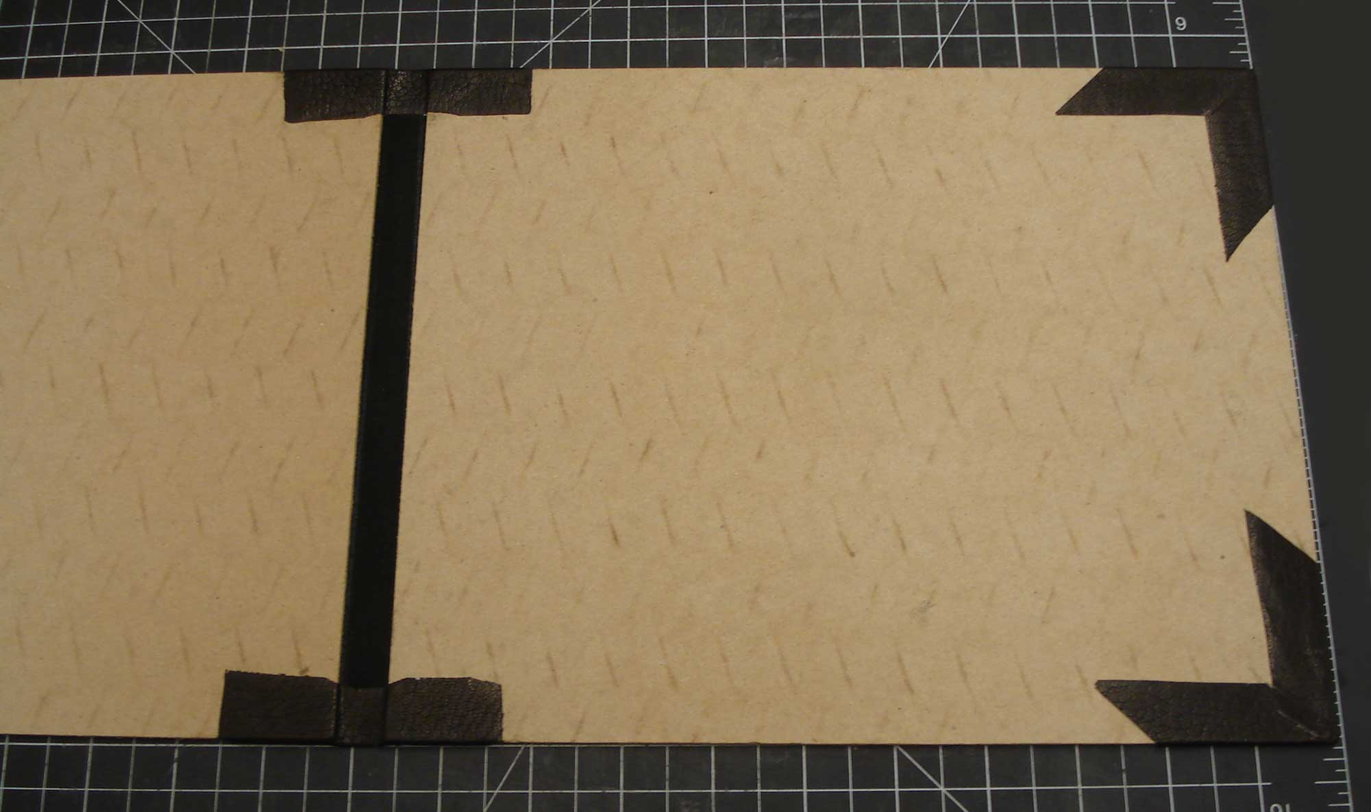 The outside of the boards are then filled with thin board or paper so that the whole surface was flat and the siding up material (in this case marbled paper) is put on.