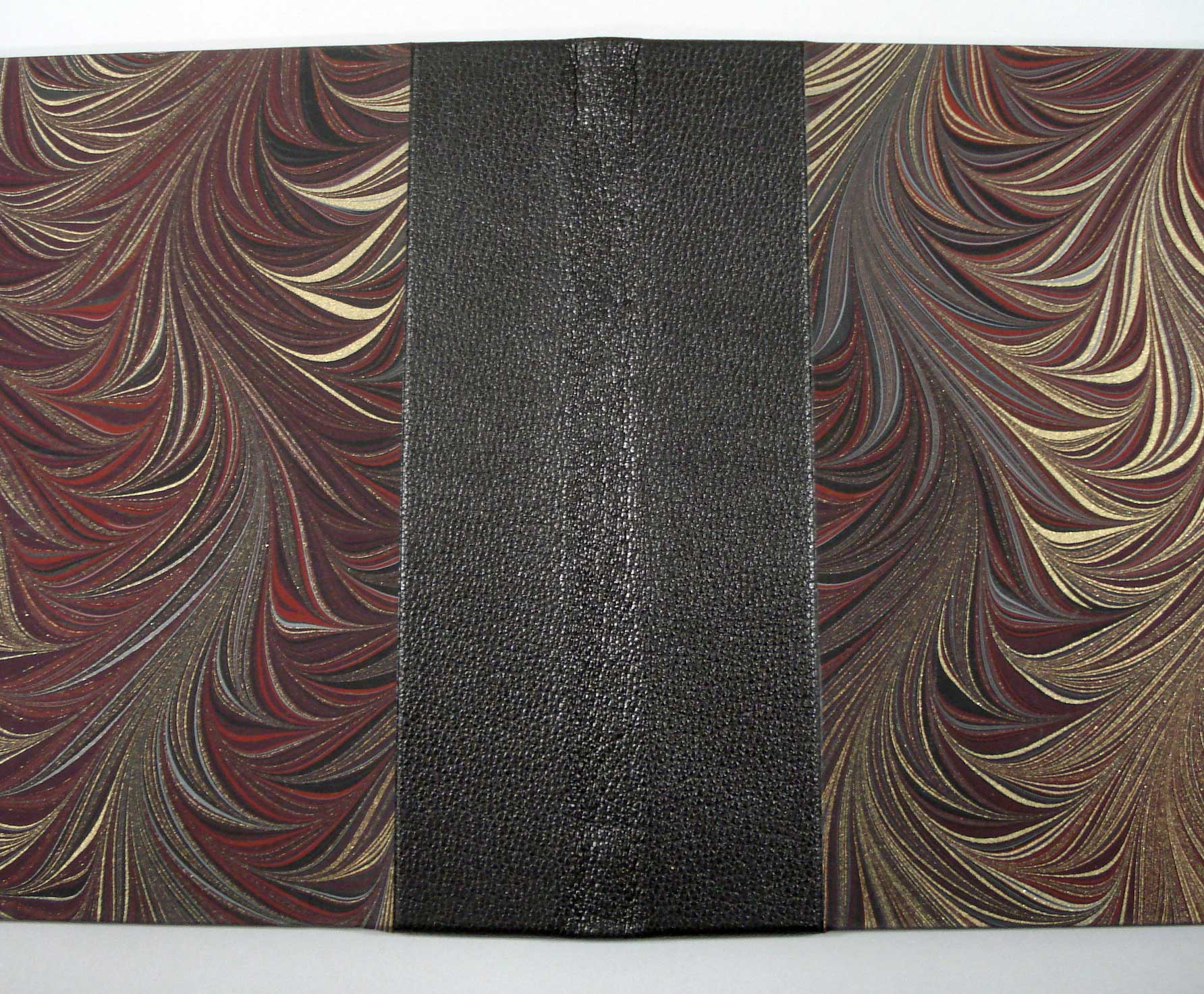 In each case, I cut the siding up material for each board from the same sheet, so that the marbling pattern was continued across the spine of the case.