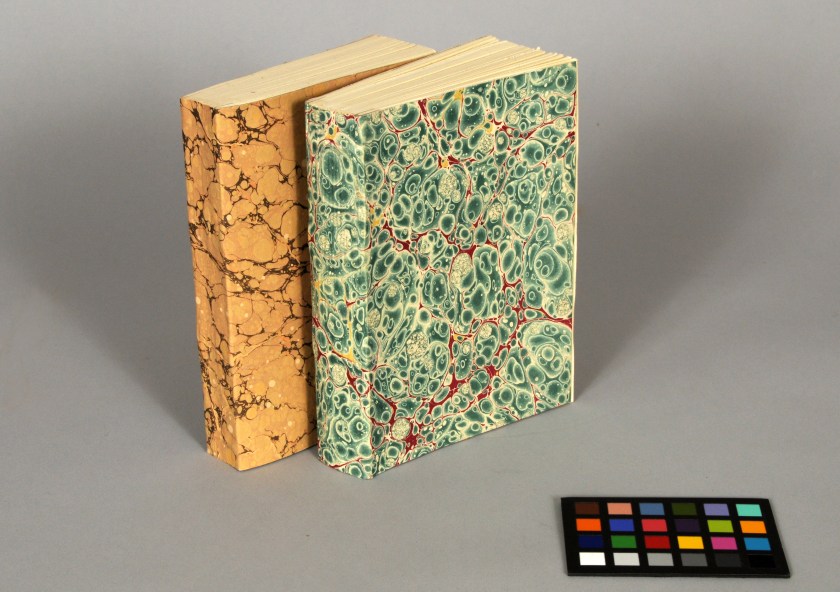 Right after our class covered lapped component bindings and stiffened paper cases, we made some laced paper case models. I feel like I should start this one off with a few disclaimers. I have very little experience with historical examples of laced paper bindings – either limp or in-boards. I have not yet read all that much about their historical context, evolution, or typical features. Therefore, this discussion will focus on only one particular structure that, while based on the binding techniques of antiquity, is heavily influenced by modern conservation practice. While I was making these paper-covered models, I went ahead and made a limp vellum binding using the same structure. There is significantly more literature available on limp parchment structures, so most of this post is actually derived from those sources. Therefore, I ask you (the gentle reader) to forgive the limitations of this discussion and its deviation from my paper-centric series.